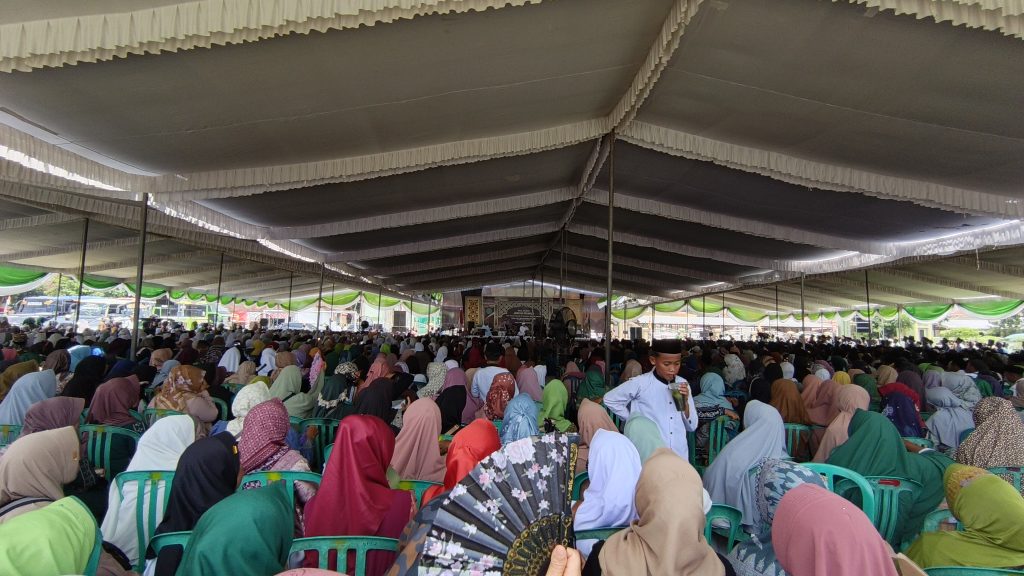 Lampung Timur — Ribuan jama’ah memadati Lapangan Desa Teluk Dalem, Kecamatan Mataram Baru, Kabupaten Lampung Timur, pada hari Sabtu 18 Oktober 2025 dalam rangka pelaksanaan Haul Akbar Fida Qubro Manaqib serta Haul Syekh Abdul Qadir Al Jailani yang digelar oleh Jama’ah Ta’awun. Acara tersebut berlangsung khidmat dan penuh semangat kebersamaan, terlebih karena juga menyongsong dengan peringatan Hari Santri Nasional tahun 2025.